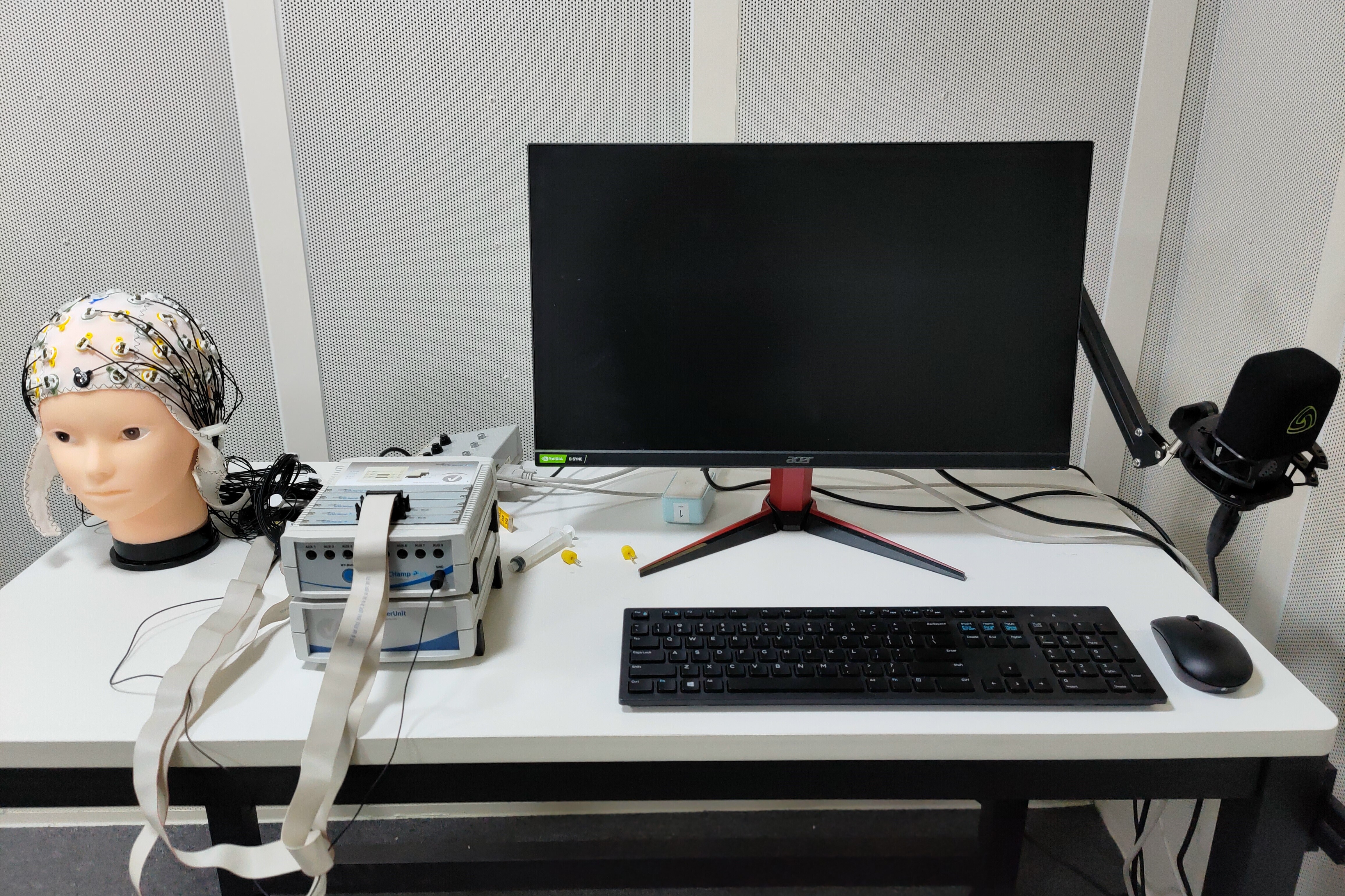 Center of Music and Brain has two soundproof chambers, which can isolate external noise and are suitable for conducting various auditory experiments. Hardware equipment includes :(1) two TDT-RZ6 multi-channel processors, which can carry out low latency auditory stimulus generation and signal acquisition at the microsecond level. (2) A Brain Products 64-channel scalp electroencephalogram amplification recorder, which can collect scalp electroencephalogram signals. (3) A GSI audiostar pro audiometer for clinical grade hearing testing.At present, the center focuses on neural mechanisms of auditory cognition, including sound harmonic perception, music perception, speech decoding, etc. By combining EEG experiment with psychophysical experiment, we will explore the brain activity process of human higher auditory cognition.