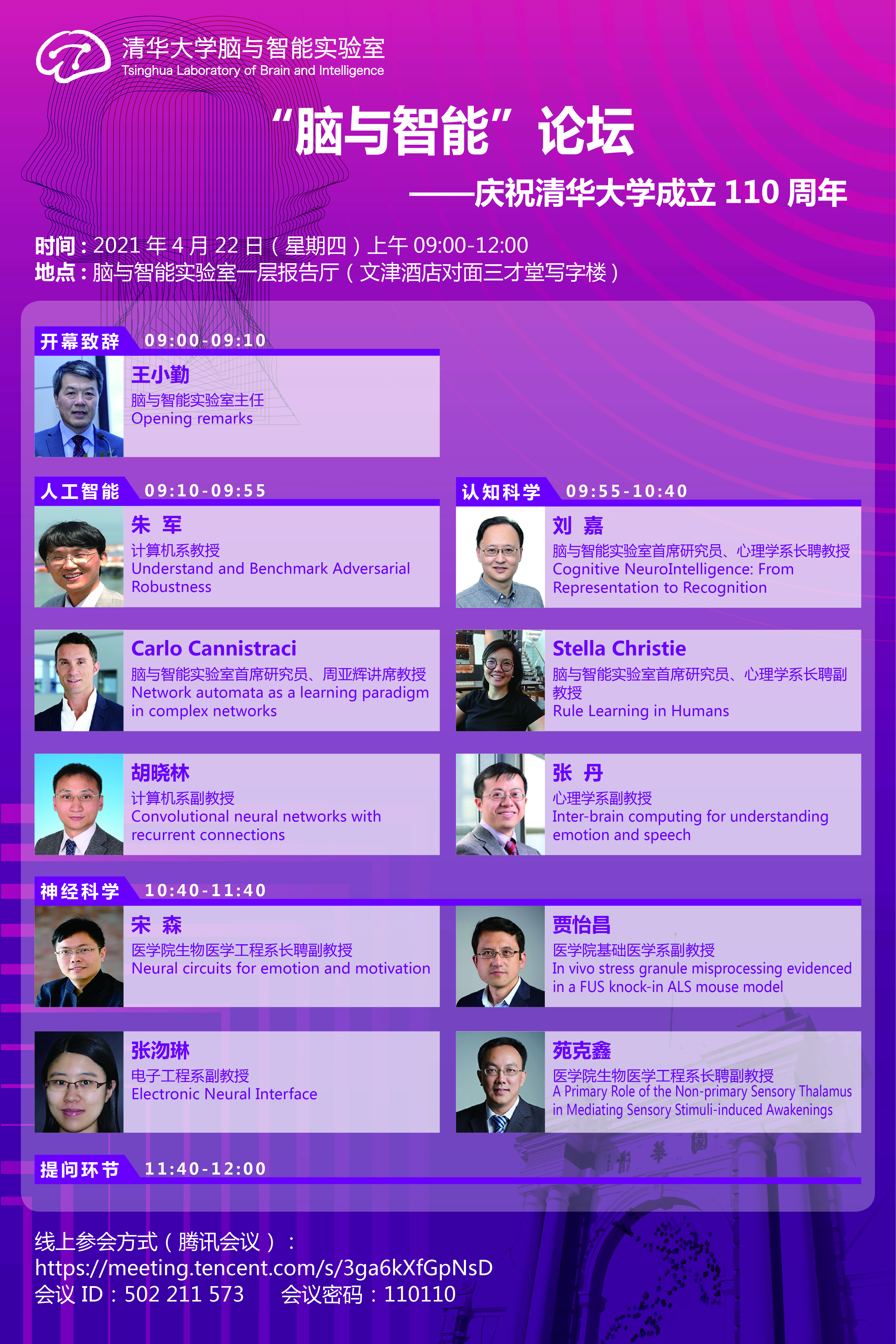 2021 “Brain and Intelligence” Forum,poster SpeakerAffiliationTalk TitleVideo Slides Wang XiaoqinDirector of Yingduoduo (China) Official Website Opening remarksClickClick...